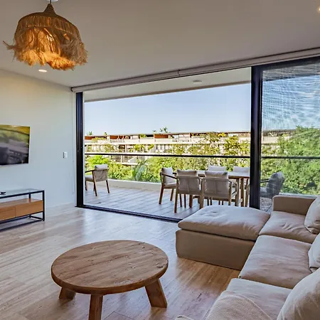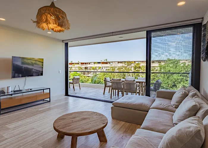 Die Ferienwohnung Lush Escape at Awa Playacar verfügt über einen Balkon sowie bietet einen Ausblick auf den Pool. Es bietet außerdem 4 Bäder, wo es eine Badewanne und eine Dusche gibt. Zudem finden Sie im Badezimmer einen Haartrockner und Handtücher.